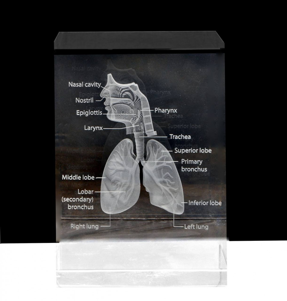 نموذج زجاجي بلّوري محفور بالليزر على شكل تشريحي لأعضاء جسم الإنسان الموضحة في الصورة بحجم 8*10 سم