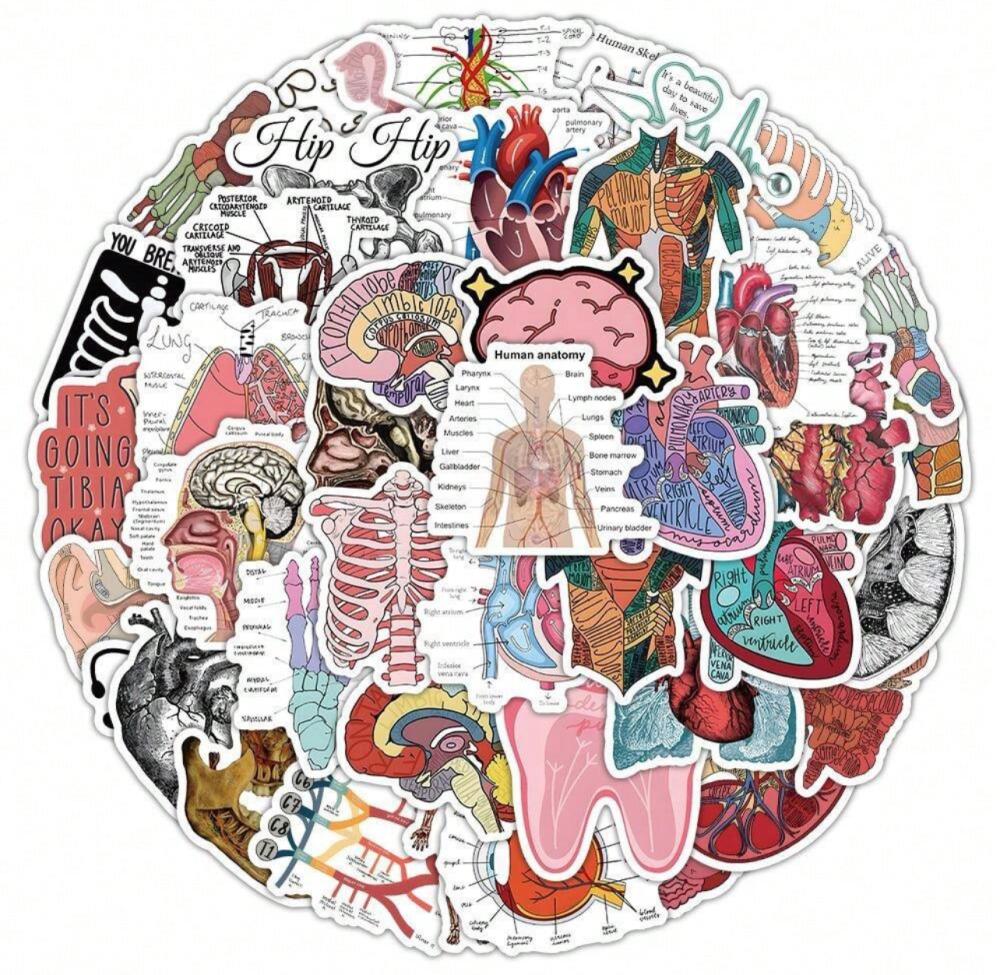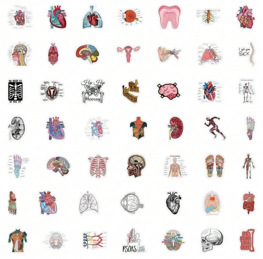 ملصقات تشريح الجسم ملونة (50 حبة)   - Colored Human Anatomy Stickers